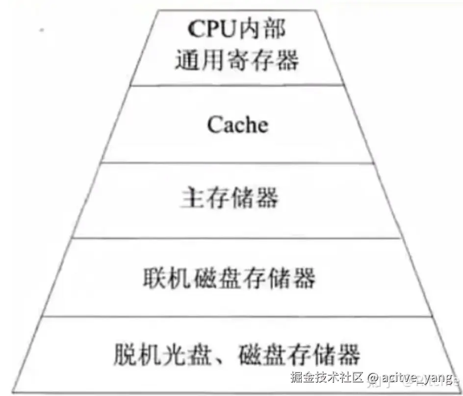 从下到上,速度越来越快,容量越来越小,价格越来越高,越靠近CPU;
