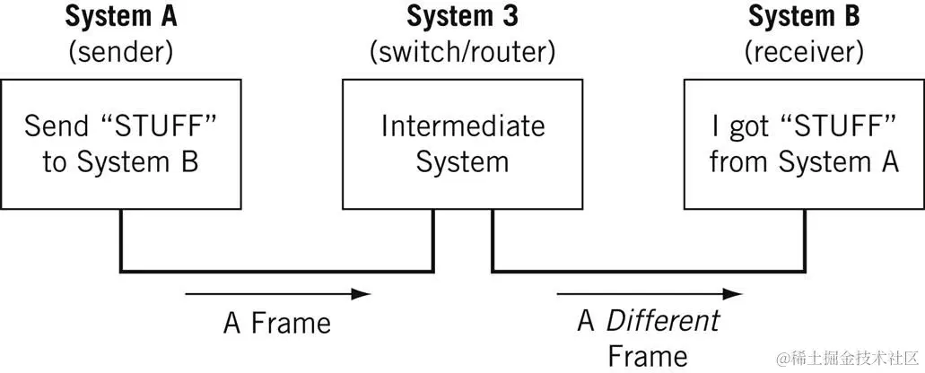 要牢记:虽然某些技术(比如协议)在逻辑上比起其它层来说可能“属于”某一层,但并非所有的技术都完全契合 OSI 模型中的单个层。例如,以太网(Ethernet)、802.11(Wifi)和地址解析协议(ARP,Address Resolution Protocol)程序在不只一层上工作。