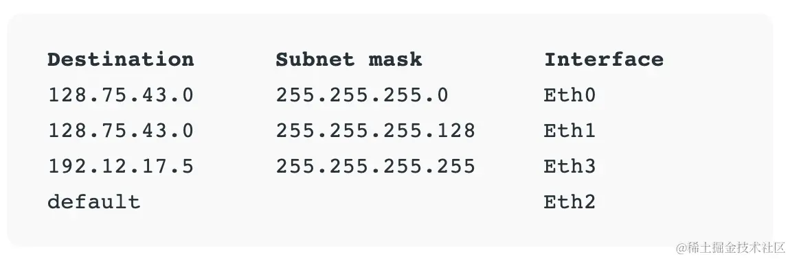 节点一旦连接到因特网,它就会被赋予一个因特网协议(IP,Internet Protocol)地址,它看起来要么像 172.16.254.4(IPv4 地址),要么像 2001:0db8:85a3:0000:0000:8a2e:0370:7334(IPv6 地址)。路由器在它们的路由表中使用 IP 地址。