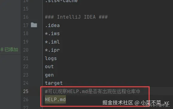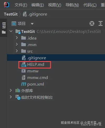 我这里为了演示向.gitignore文件中添加了HELP.md文件用来观察等会远程仓库中是否会出现该文件
