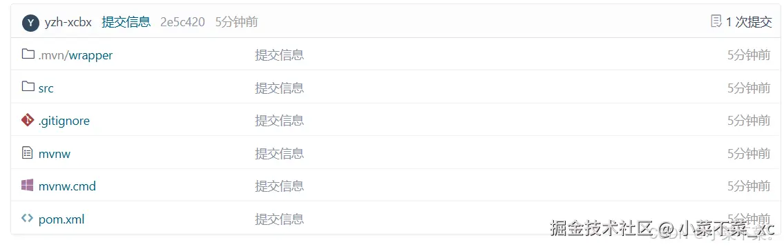 上传完毕后我们去Gitee中的仓库检查,发现在.gitignore文件中添加的HELP.md以及一些.idea等文件确实没有出现在远程仓库中