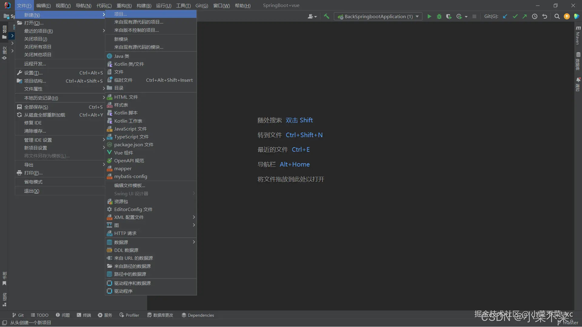 为了进行演示,这里我新创建一个SpringBoot项目,别的项目同理