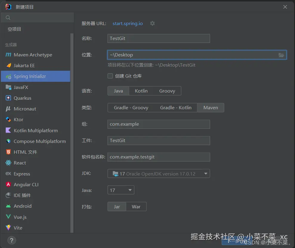 点击 文件 -> 新建 -> 项目 -> 选择Spring Initializr 创建一个SpringBoot项目
