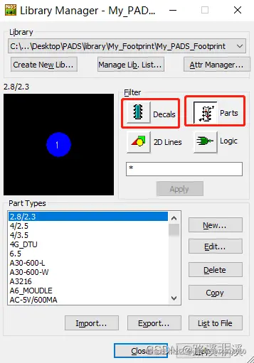其中,parts对应的是封装模块,里面引用的也是decal中的具体封装实现。