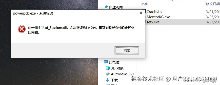 先找到X:\MentorGraphics\9.5PADS\SDD_HOME\common\win32\lib文件夹,(X指你安装PADS的目录),把里面的dll文件全部复制到X:\MentorGraphics\9.5PADS\SDD_HOME\Programs文件夹,不要覆盖原有的文件,选择跳过,可以解决了。
