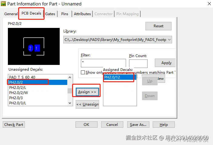 在decal中选择一个已有的封装。比如8排针,PH2.0/8,我们将其修改成12pin的。