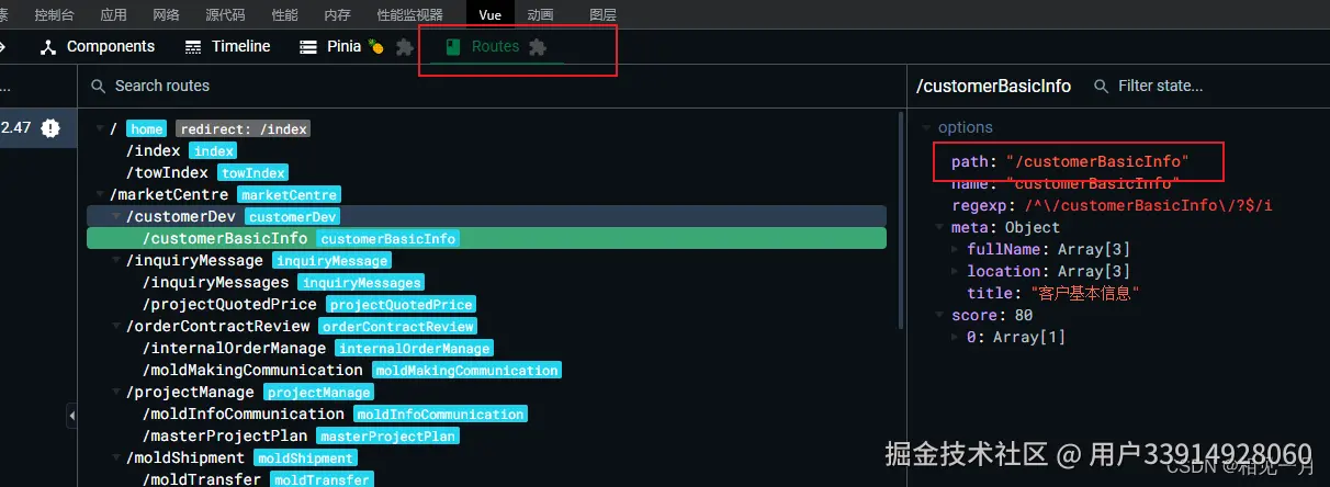 当然实际开发情况可能什么情况都有,如果你刚开始学,不懂找路由,使用vue开发工具devtools 查看,也很方便(没有下载的,下面那有教程)