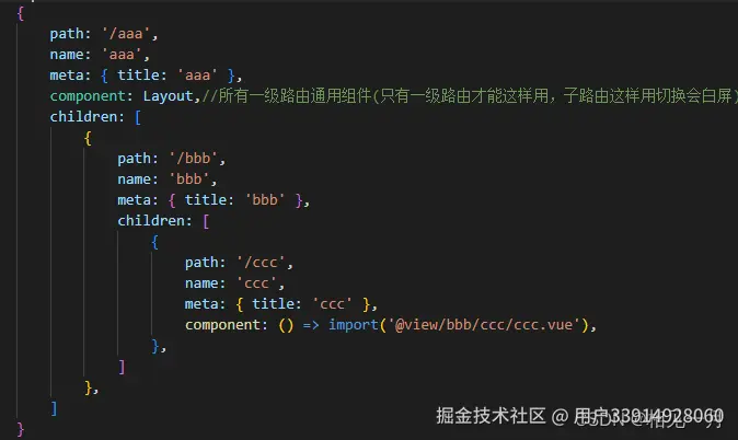 我一般写三级路由时,二级只用来包含三级路由用的,不会写component组件