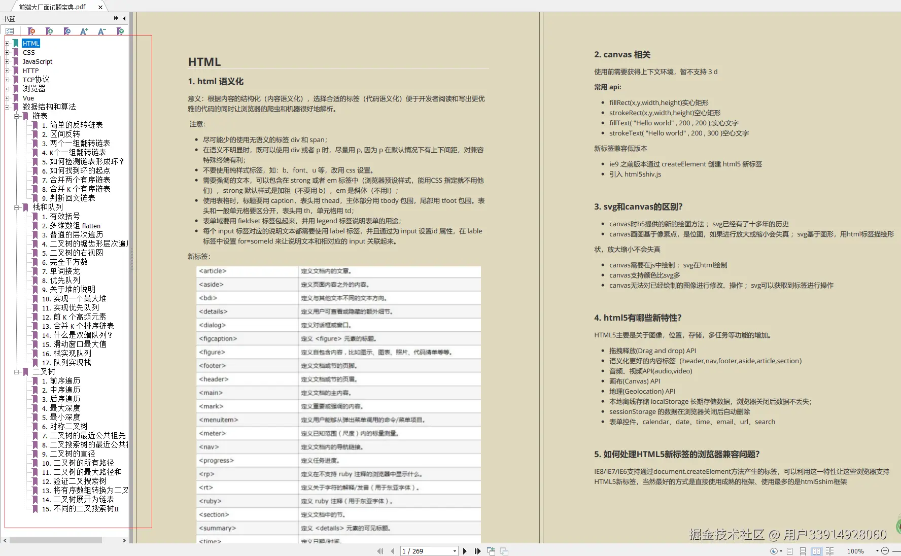 篇幅有限没有列举更多的前端面试题,小编把整理的前端大厂面试题PDF分享出来,一共有269页