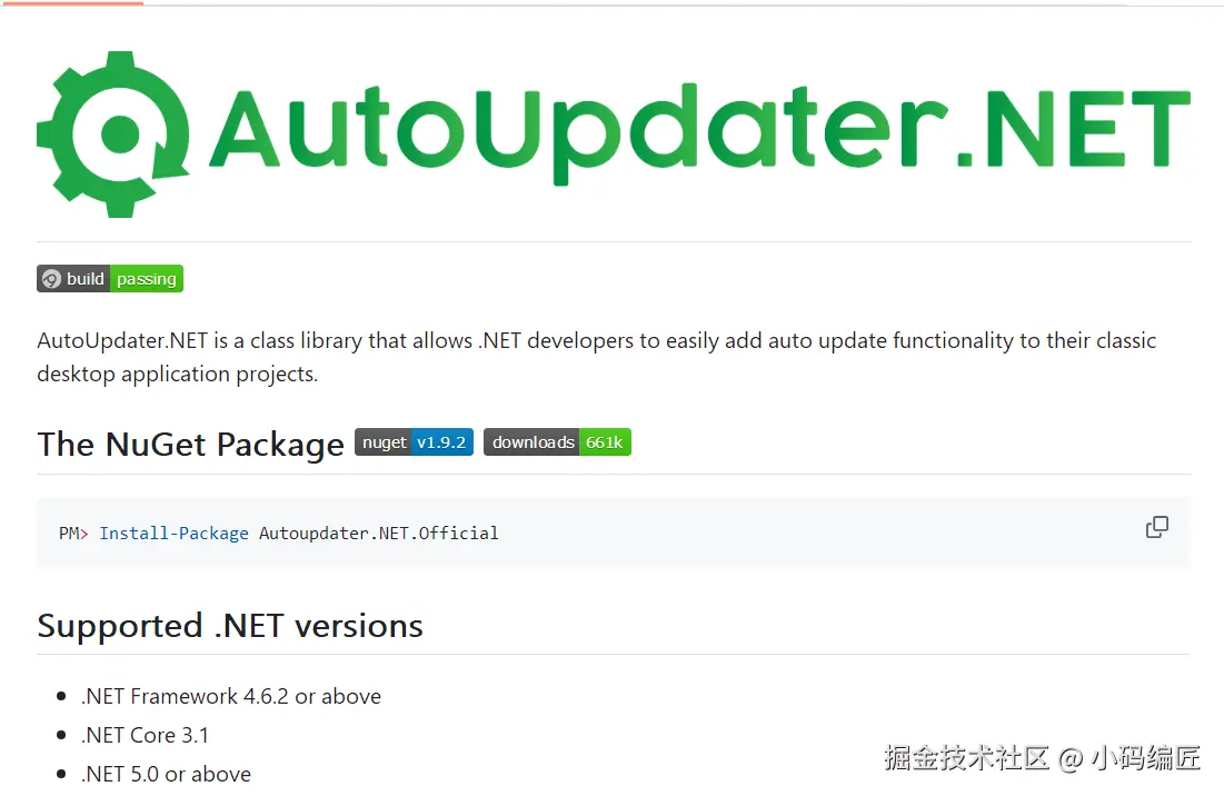要使用 AutoUpdater.NET,首先需要安装 AutoUpdater.NET.Official NuGet 包。