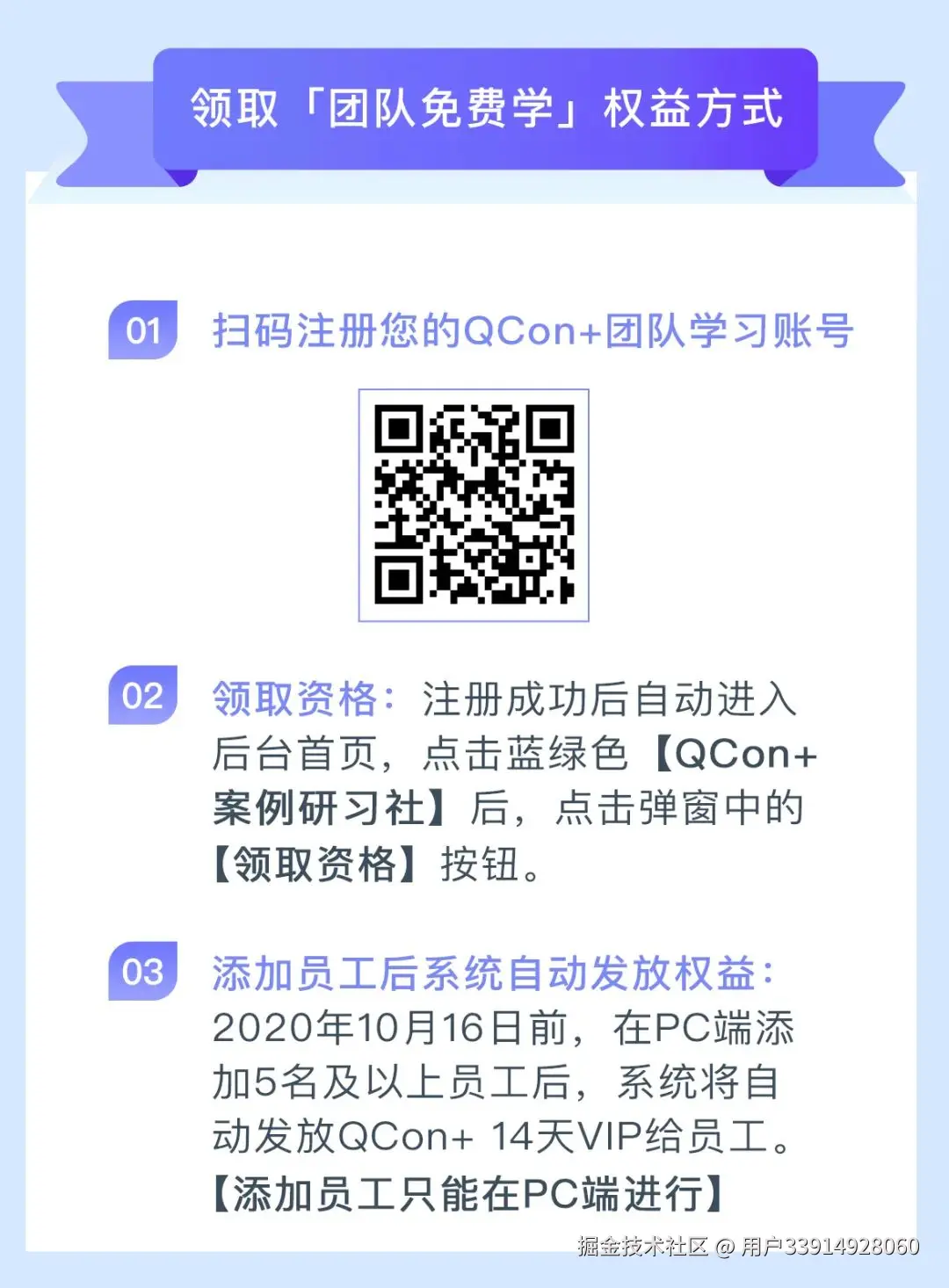 为了提高大家的学习效果,如果在学习过程中遇到难以理解的问题,可以在极客时间App内QCon+ 对应的案例下向老师提问,案例发布后一个月内,老师会配合完成App内评论区的答疑。