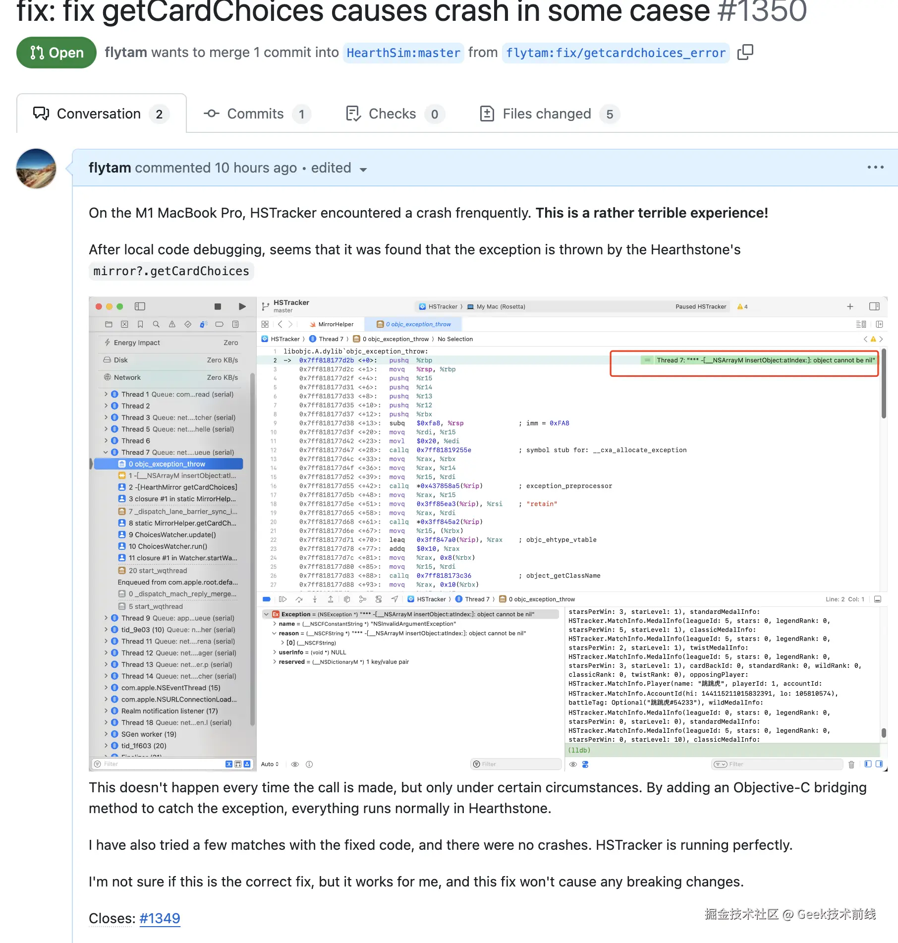Geek技术前线。最近在打炉石过程中遇到了HSTracker记牌器的一个闪退问题,尝试性排查了下原因。这里简单记录一下