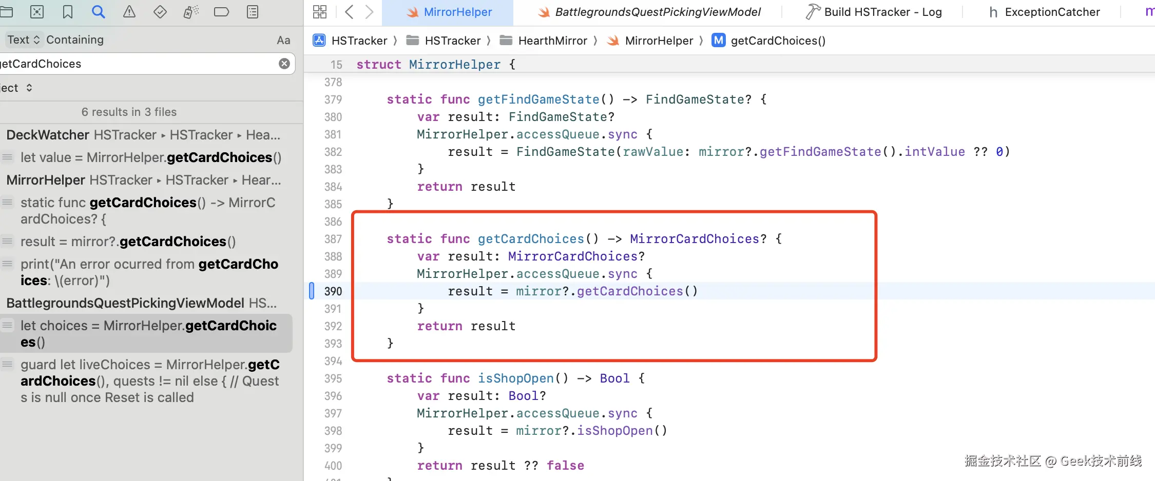 最后问题成功修复,实测了多局也没有再复现 crash 的问题,并且mirror?.getCardChoices()的报错本身捕获也并不会实际有记牌器功能本身上的问题