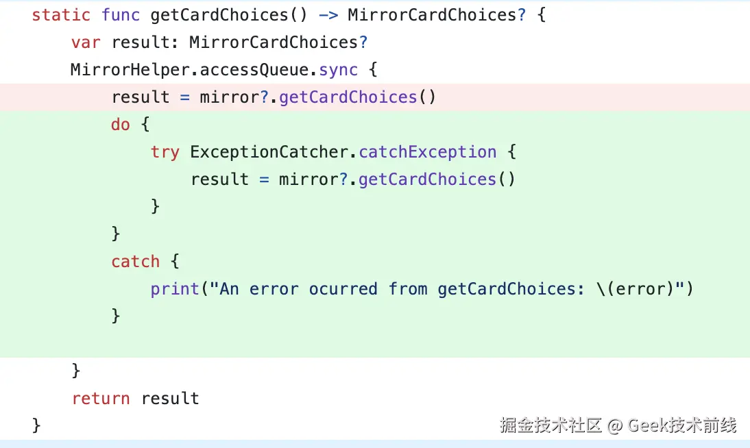 在 swift 中对mirror?.getCardChoices()进行异常捕获