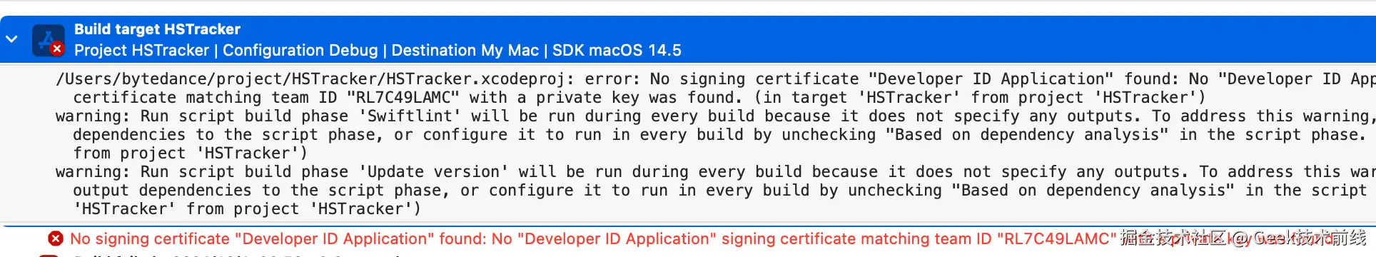 报错 1 No "Developer ID Application" signing certificate matching team ID