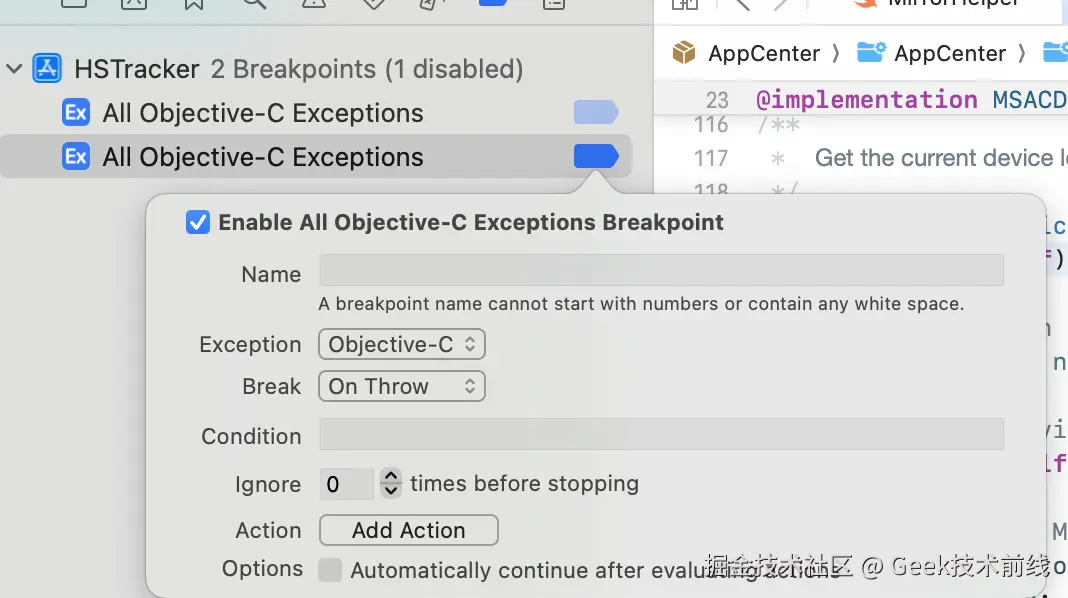 需要通过一个桥接 OC 方法来实现在 Swift 对 OC 方法的异常处理。在HSTracker-Bridging-Header.h中引入桥接头文件