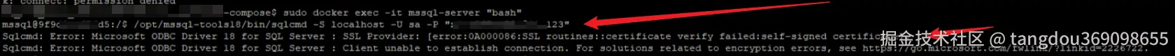 Sqlcmd: Error: Microsoft ODBC Driver 18 for SQL Server : SSL Provider: [error:0A000086:SSL routines::certificate verify failed:self-signed certificate].