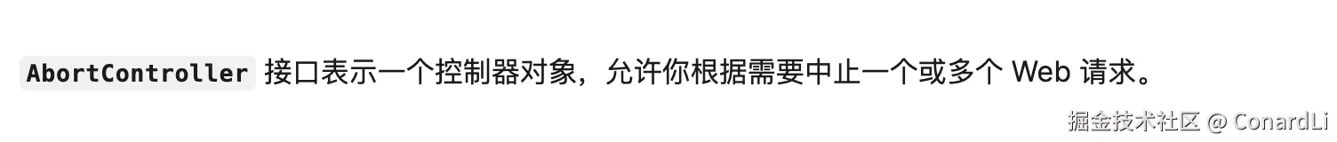 在过去,大家在提到 AbortController 的时候,一般会举请求中断的例子,就连 MDN 给到的描述也是这样的:
