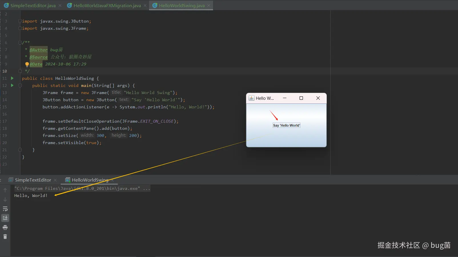 假设我们有一个使用Swing实现的简单窗口程序,现在将其迁移到JavaFX。