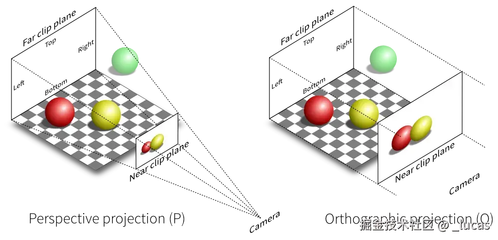 PerspectiveCamera(fov: number, aspect: number, near: number, far: number)可以调节相机参数直观地看看效果,这里也可以换成正交相机试试