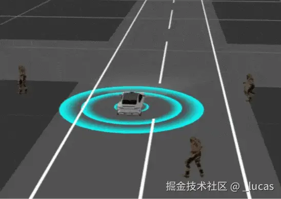 在智驾场景里,元素的坐标数据可能基于自车坐标系(自车不动)或者原点坐标系(自车动)。为了简单点,autopilot 先基于原点坐标系来mock道路和障碍物等,然后基于tween来做行驶的动画演示,既然是原点坐标系,那意味着自车需要实时更新位置信息和偏转方向,所以就需要实现跟车相机
