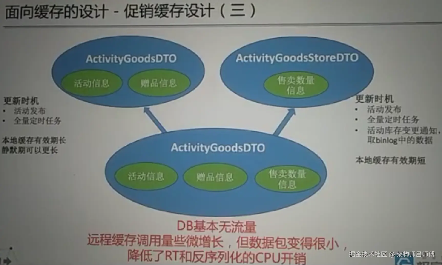 拆分后使得数据库(DB)基本没有流量,远程缓存调用虽然有些微增长,但数据包变得很小,从而降低了响应时间和反序列化的CPU开销。