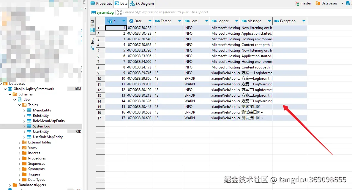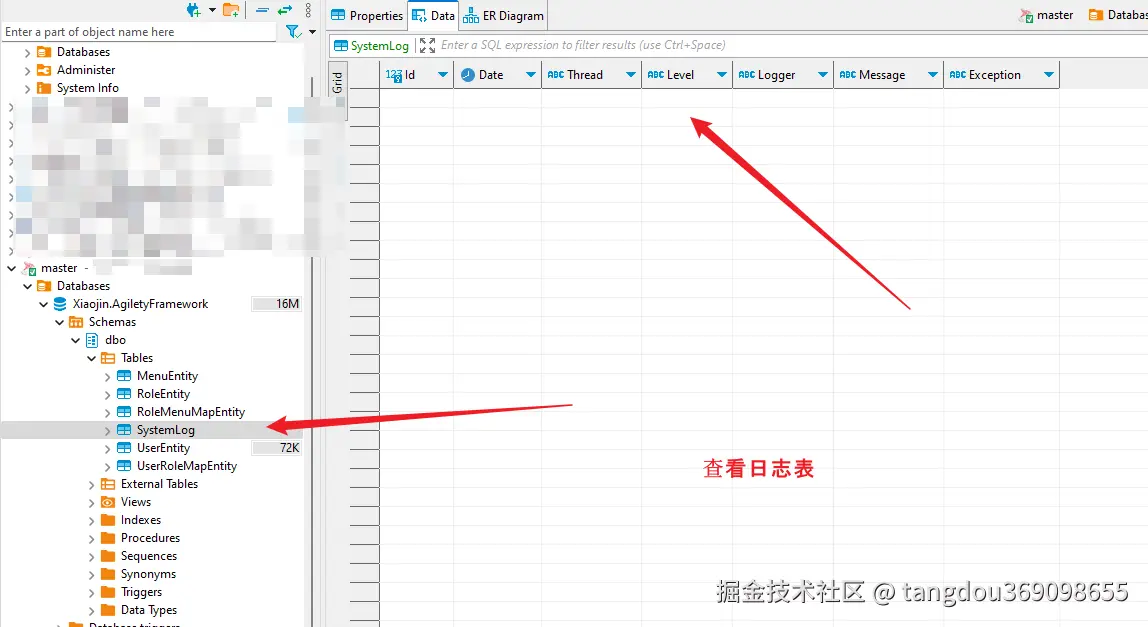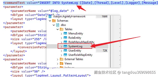 - 要在log4net.config中配置使用新的数据库表名SystemLog,您需要更新AdoNetAppender的部分配置。具体来说,需要更改commandText中的表名。