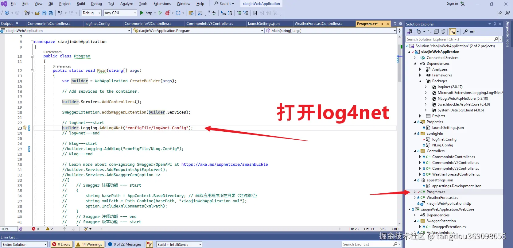 请先根据.net8系列-05文章配置好log4net日志依赖,再进行下面的步骤:详情请参考:.net8系列-05图文并茂手把手教你.NET Core 下使用 Log4Net 记录日志,配置日志组件log4net