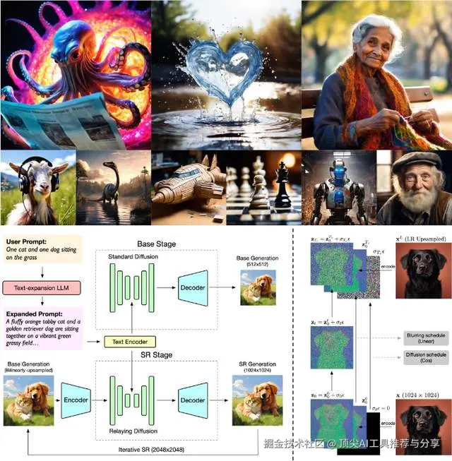 CogView3作为首款运用中继扩散技术的模型,其创新的级联扩散策略先产生低清晰度图像,再借助中继超分辨率技术完善输出。这一方法不仅极大提高了图像生成的质量,还在训练和推理效率上实现了显著优化。