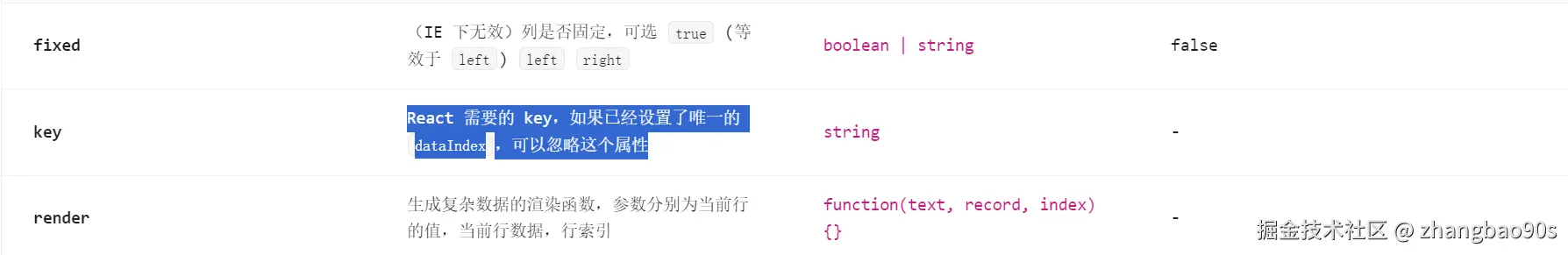 说起来,这个 key 其实是在渲染 <Table.Column> 组件时使用 React key,保证数据刷新时的正确渲染。