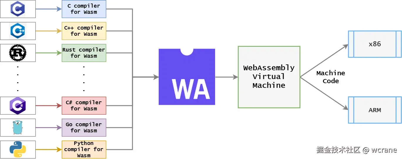 一般很少有人直接写文本格式,而是通过其他语言、或者是现存lib来编译成浏览器可用的wasm,这样很多客户端的计算模块只需简单处理都能很快转译成WASM在浏览器使用的模块,极大丰富了浏览器的使用场景。