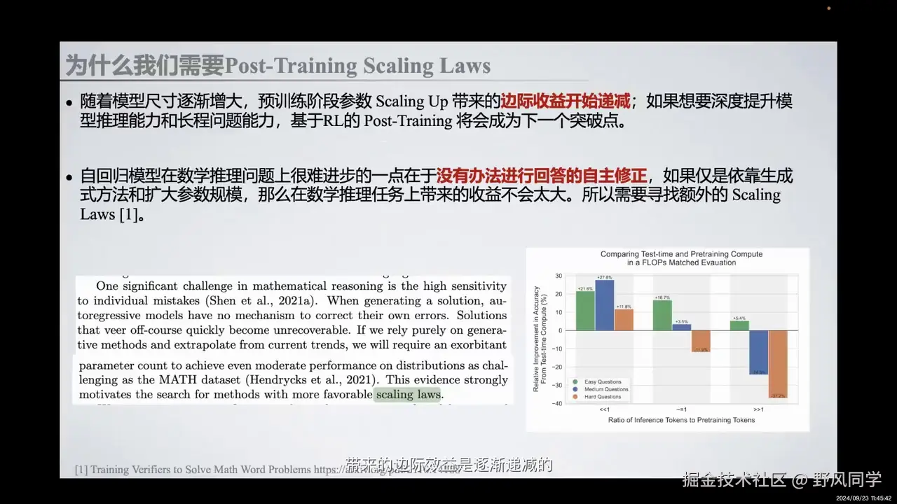 - Post-Training Scaling Laws的实现为模型能力的提升提供了新的维度,不再局限于预训练阶段。