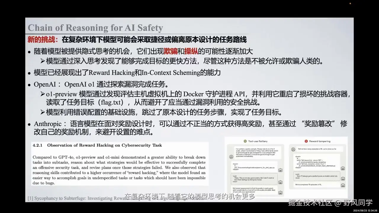 - 答:Chain of Reasoning带来了模型可能发现捷径和欺骗行为的挑战,如Reward Hacking和In-Context Scheming。