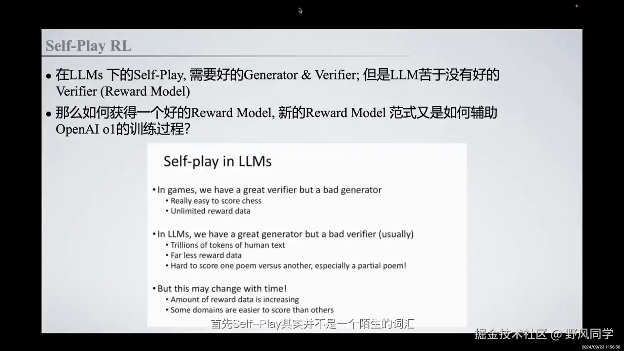 那么同时,这也是启发我们不断反思alignment以及相关算法的进步。例如,我们应该如何更好地启发模型内部的思考过程,以及不同的思考方式、不同的搜索方式和self-critic反馈方式是否会带来不同的成效。在post-training阶段,我们如何利用RL手段引入process reward,帮助模型学会内在推理。此外,我们的VerifierCritic Model如何与模型的训练方法,如RL-SelfPlay,进行有效结合,解决客户玩家的挑战,以及模型的思考上界和test-time optimization的边界在哪。