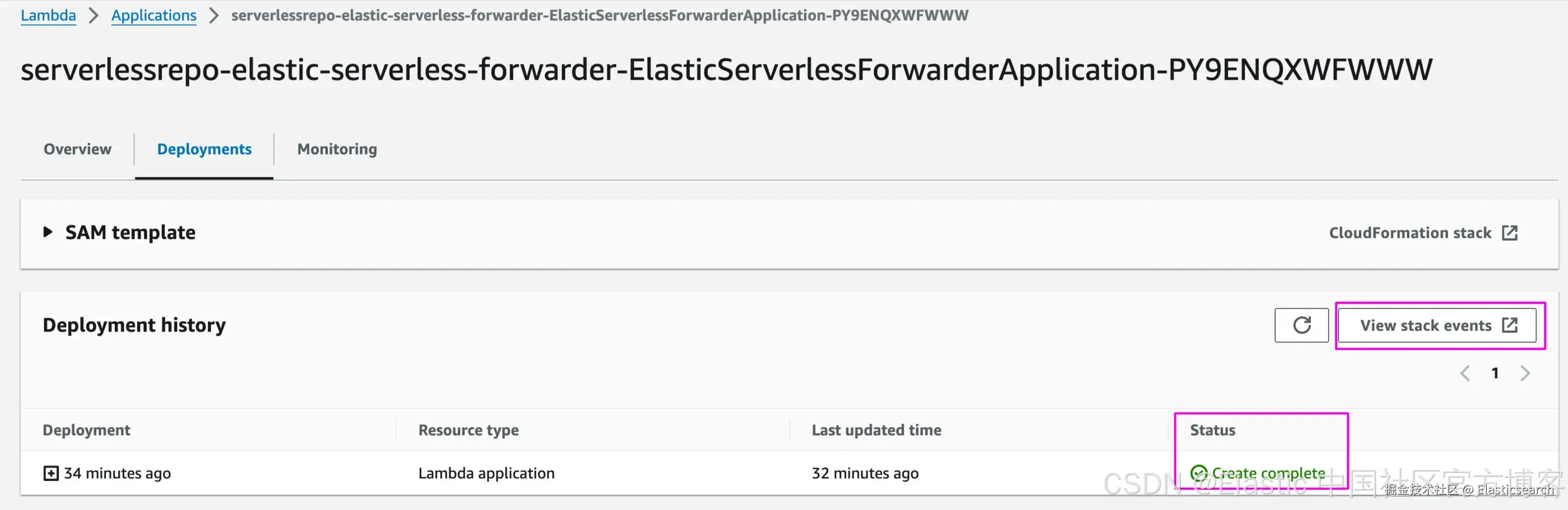 部署成功后,Lambda 部署的状态应为 “Create Complete”: