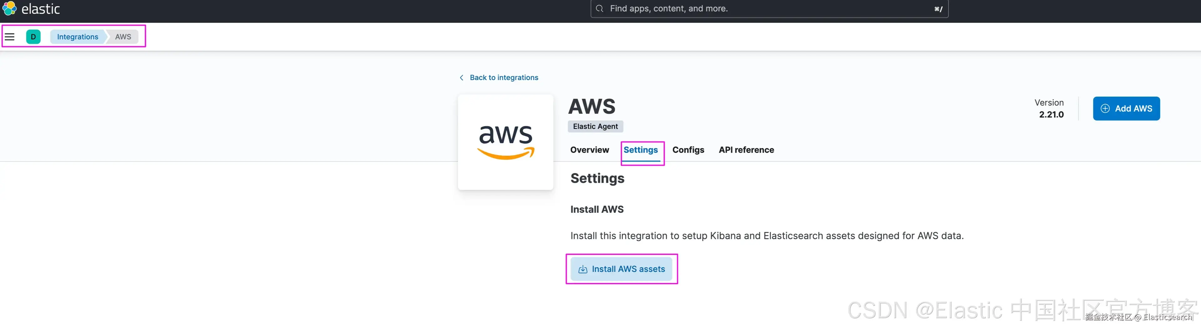 如前所述,除了其他资产外,AWS 集成还提供预构建的仪表板。我们可以使用 Elastic 代理提取方法监控我们设置中涉及的 AWS 服务,我们将在本系列的第 2 部分中介绍该方法。这将有助于跟踪使用情况并有助于优化。