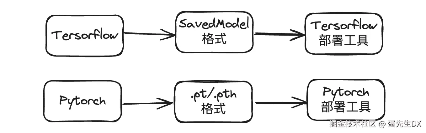 蛋先生:各个机器学习框架都有自己的模型格式,在没有 onnx 之前,你得用 tf 来部署 tensorflow 的模型,用 pytorch 来部署 pytorch 的模型。可用户只想部署个模型而已,能不能把问题简单化呢?