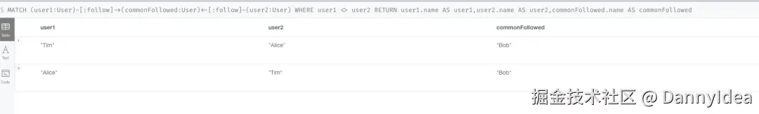 这里会展示一个表格的数据出来,显示出Alice和Tim有个共同的好友Bob