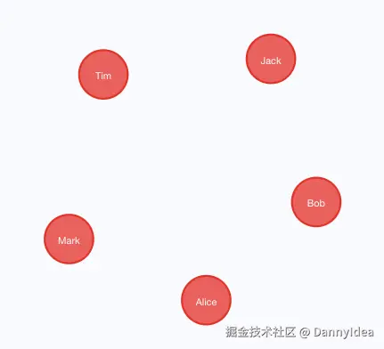 首先当一个用户注册了某款社交APP后,我们可以尝试将它的用户数据写入到neo4j中。例如Alice,Bob等多个用户被写入到neo4j中。