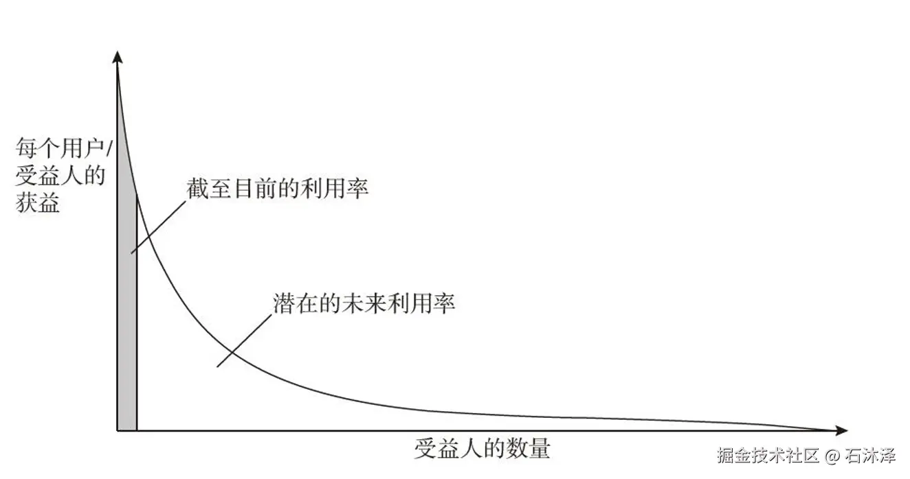 并且那些强烈关注去中心化的人只处于分布的最高点(如下图),对于此类个体,区块链已经发挥了峰值效用(比如早期丝绸之路以及维基解密利用比特币支付和捐助的例子)。