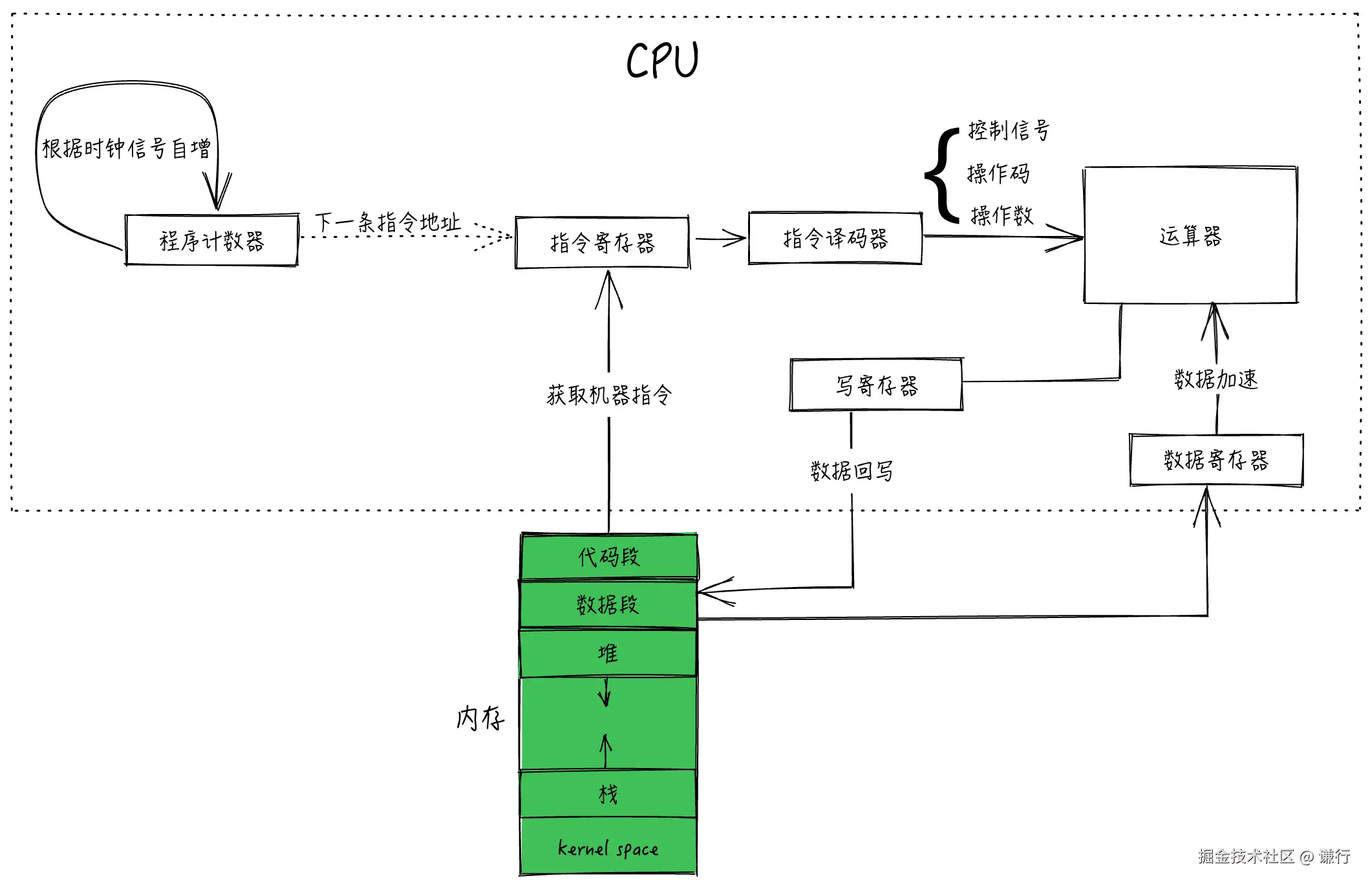 CPU 包含一个指令解码单元,用以解析指令的具体操作,指令通常由操作码(Opcode)和操作数组成: