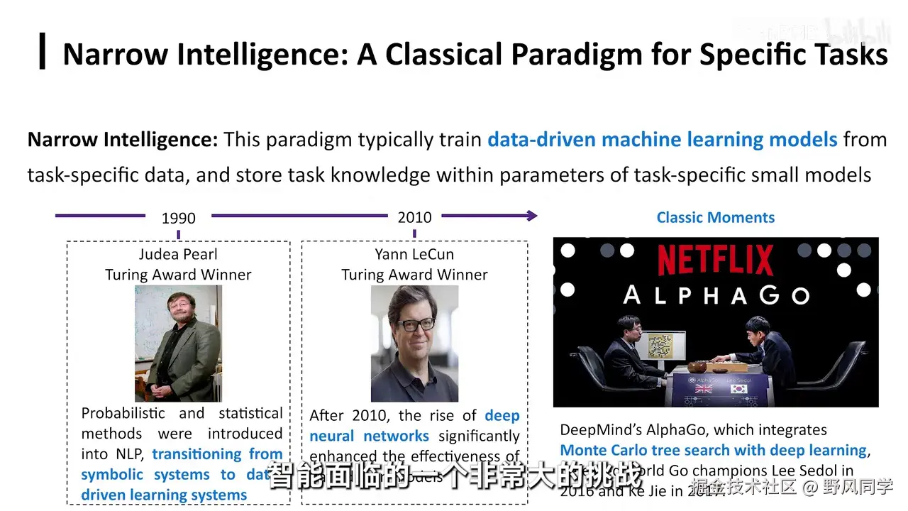 - 人工智能的早期阶段:符号智能和专用智能。