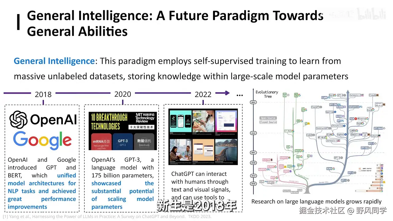 - 大模型技术的兴起:2018年GPT和Bert模型的发布,2022年GPT-3的出现。