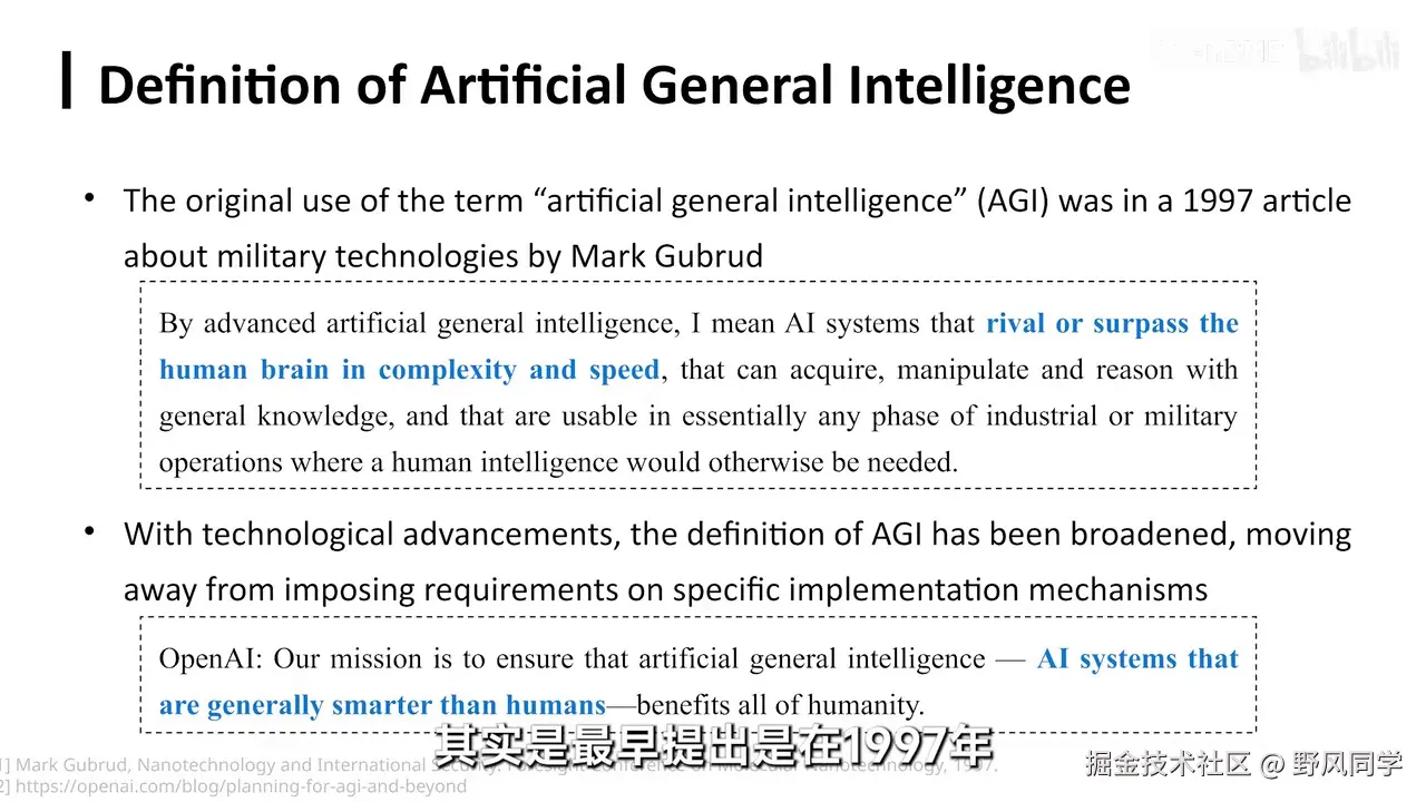 - 通用人工智能(AGI) :指具有与人类智能相当水平的机器智能,能够执行多种智能任务。