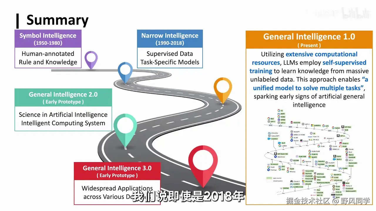 - 当前处于通用智能的初步阶段,自2018年预训练模型出现以来,仅约六年时间。
