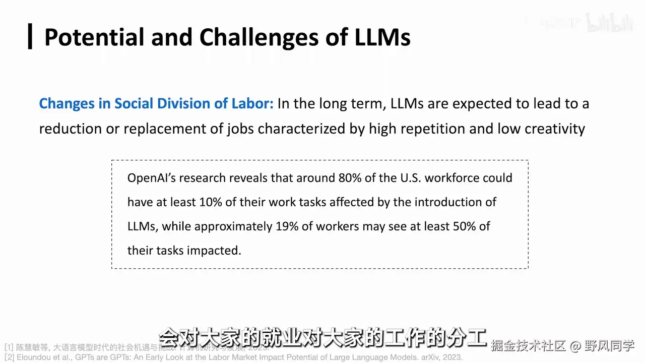 - 大型模型工具可能替代人类的部分机械性脑力劳动,影响就业和工作分工。