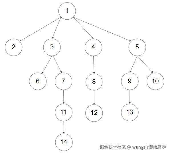 输出:[1,2,3,6,7,11,14,4,8,12,5,9,13,10]