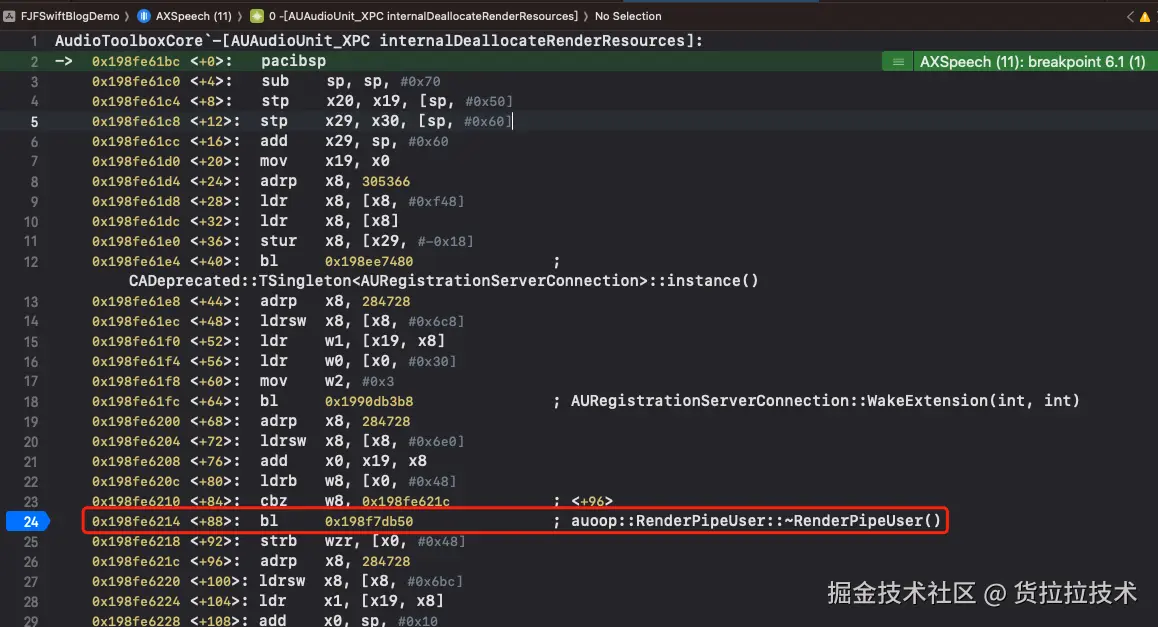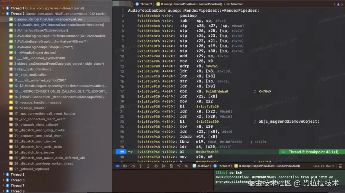 然后我们断点到: -[AUAudioUnit_XPC internalDeallocateRenderResources] + 92 (AUAudioUnit_XPC.mm:904)