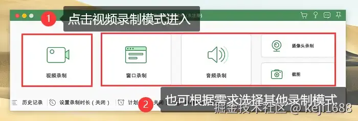 步骤1:在电脑上点击录屏软件进入软件主界面,根据需求选择合适的录制模式。