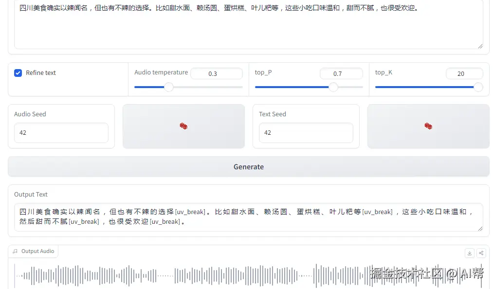 ChatTTS 是一款强大的对话式文本转语音模型。它有中英混读和多说话人的能力。ChatTTS不仅能够生成自然流畅的语音,还能控制笑声、停顿、语气词等副语言现象。这个韵律超越了许多开源模型。